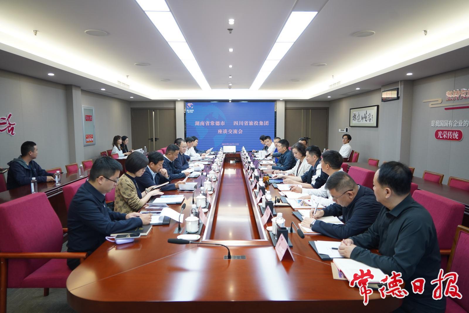 四川省旅游投资集团有限责任公司是四川省委省政府批准组建的大型旅游旗舰型企业集团。周振宇与该集团党委书记游勇举行座谈,共寻合作契机。周振宇表示,希望借此机会搭建起高效沟通的桥梁,寻求与该公司在多层次、多领域的务实合作机会,共同挖掘常德文旅产业的巨大潜力。游勇表示,集团高度重视与常德的合作,愿意在文旅品牌流量推广、桃花源提质增效与运营管理、智慧文旅建设、文旅新业态培育等方面开展深度对接与合作探索,实现优势互补、互利共赢。