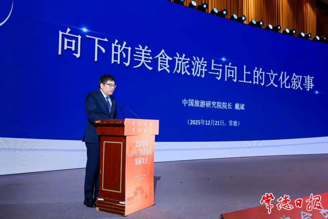 12月21日,美食中国——2025美食旅游发展大会在常德举行。中国旅游研究院院长、文化和旅游部数据中心主任戴斌,湖南省委宣传部副部长,湖南省文化和旅游厅党组书记、厅长李爱武,常德市委副书记、市长周振宇,山西省文化和旅游厅党组成员、副厅长张志仁,湖南省文化和旅游厅党组成员、副厅长龚铁军,常德市委常委、市委宣传部部长黎军锋,常德市人民政府副市长陈华等领导出席活动。